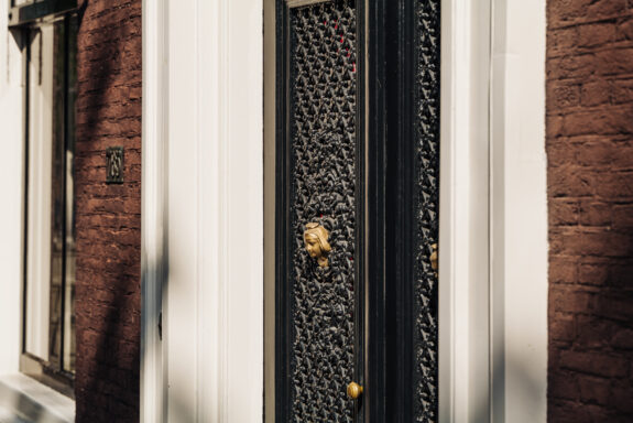 The last house on the Keizersgracht is a remarkable monument, a crosswise-built residence with three windows wide on the canal and a beautiful door in the center leading into a central hall with a wide staircase.