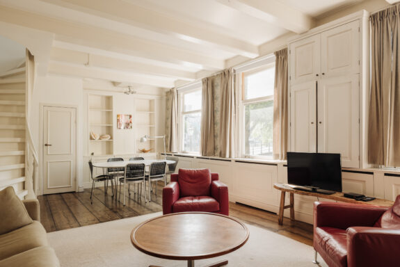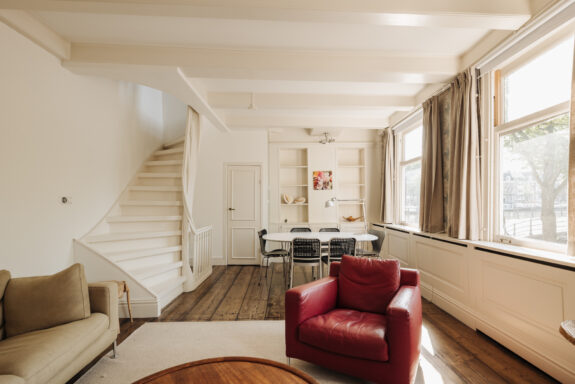 A stunning monument in an exceptional location, with the spaciousness of the Amstel and the coziness of the Canal Belt. I am a big fan of the Amstelveldbuurt, with its openness and the many delightful restaurants and shops. The owners of this charming residence have been living outside Amsterdam for some time and have decided not to return permanently.