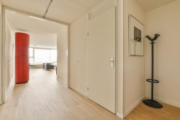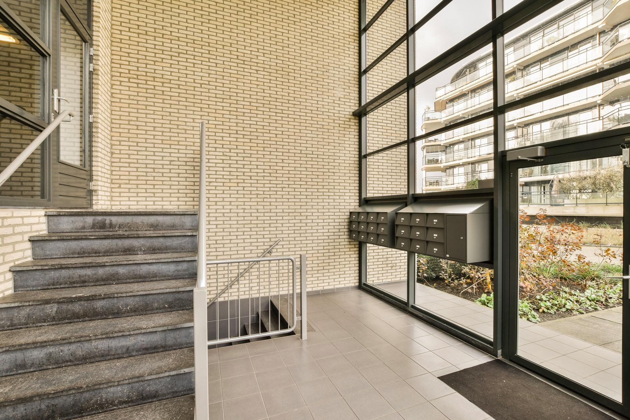 Moderne gemeenschappelijke entree geeft toegang tot het appartement gelegen op de tweede verdieping van het gebouw. De L-vormige hal beschikt over een separaat gelegen toilet met fontein en een grote inbouwkast. Bijzonder is de royale opzet van de woonkamer met grote ramen die voor veel lichtinval zorgen. De nette lichte vloer draagt daarnaast bij aan de sfeervolle uitstraling van het geheel.