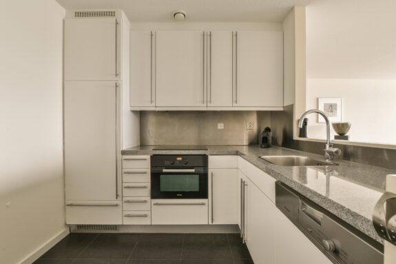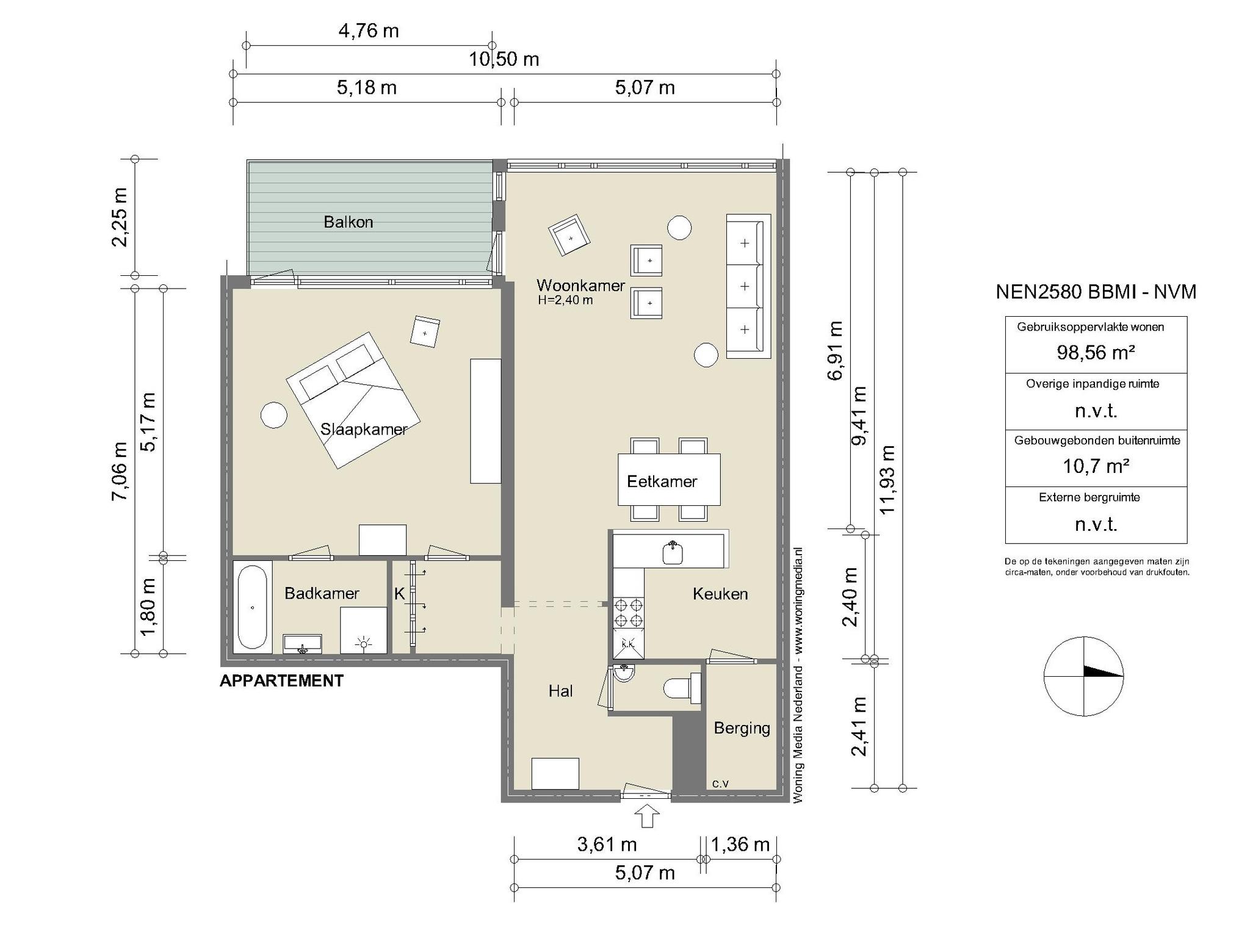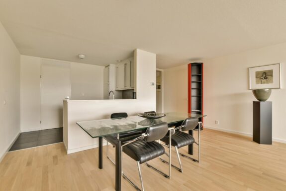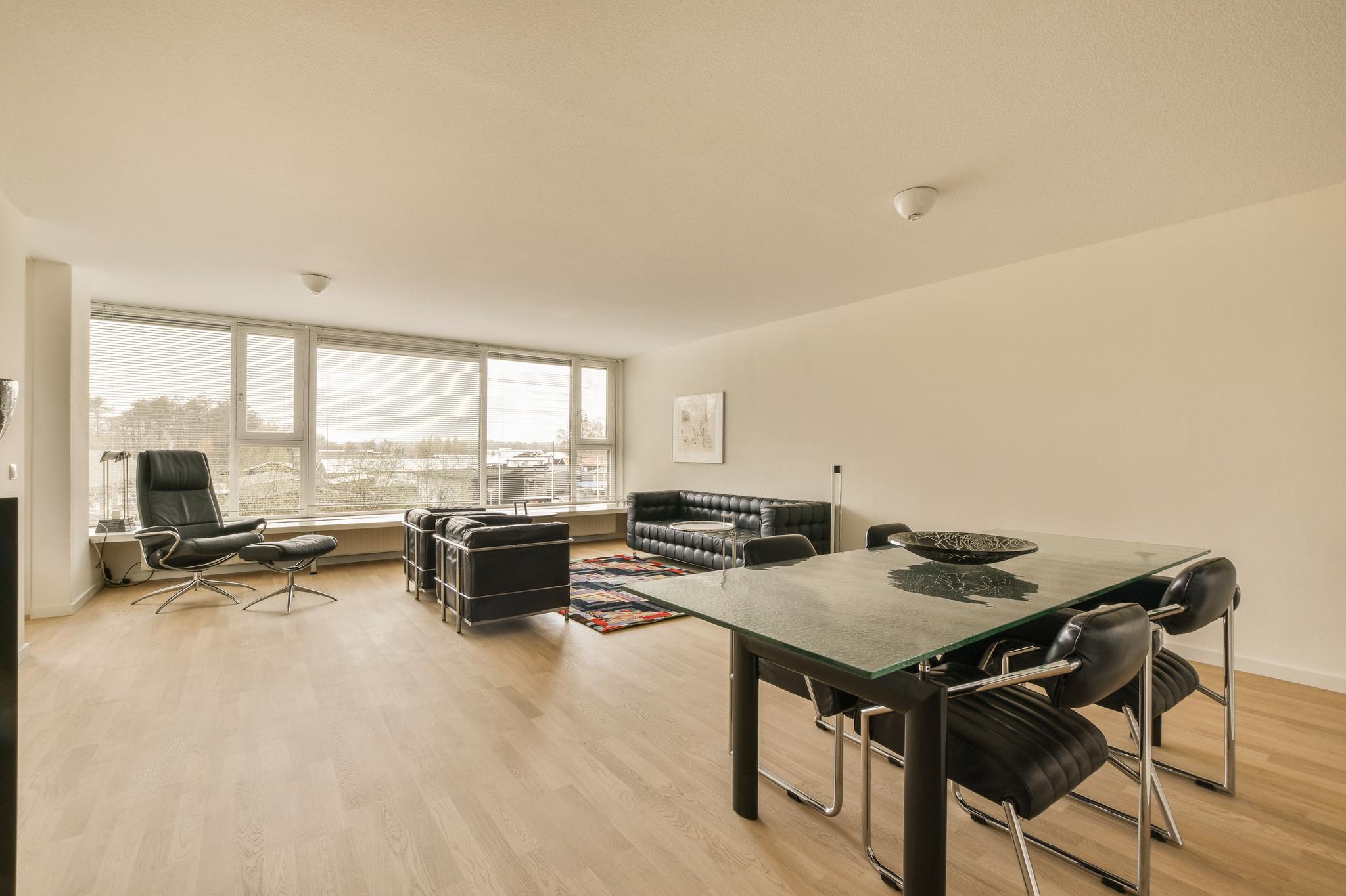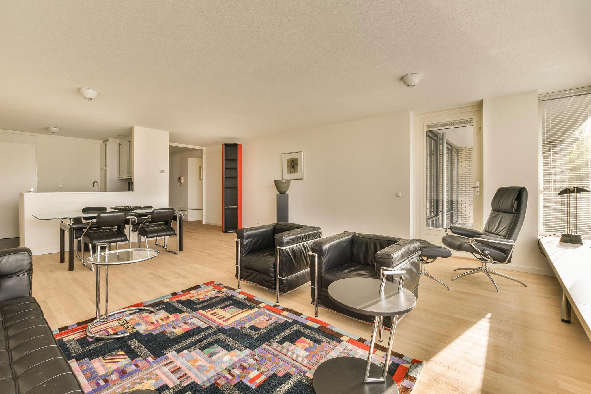 De half open keuken heeft een hardstenen werkblad, vijf-pits gasfornuis en is voorzien van diverse inbouwapparatuur. Een fijne plek voor het bereiden van een heerlijke maaltijd. Naast de keuken is er een interne berging met wasmachine- en drogeraansluiting en voldoende opbergruimte. Vanuit de woonkamer is er toegang tot het zonnige balkon wat gelegen is op het westen. Het balkon heeft een prachtig uitzicht over de jachthavens van de Nieuwe Meer en het Amsterdamse Bos.