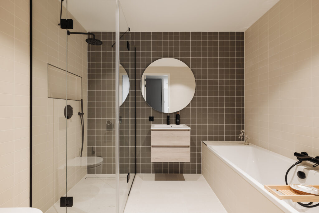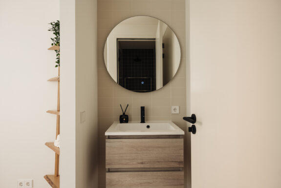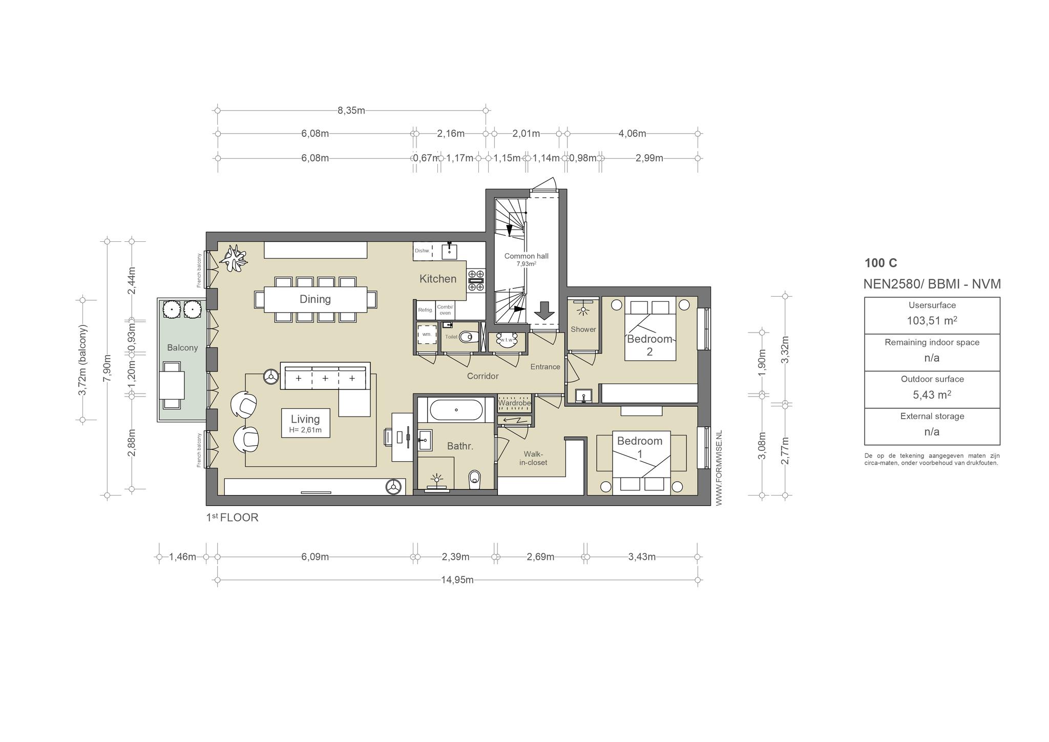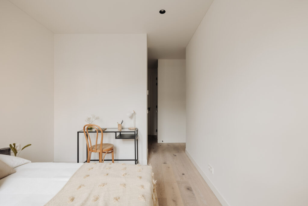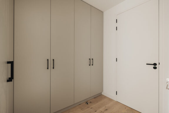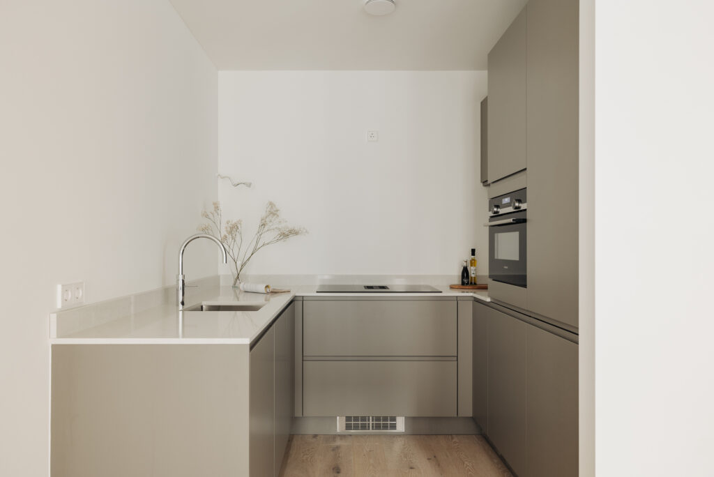 Bij binnenkomst middels spreekt de moderne open woonkeuken aan de achterzijde direct tot de verbeelding. De maatwerk keuken is voorzien van diverse inbouwapparatuur en de woonkamer krijgt veel daglicht binnen door de vier brede ramen en daardoor ontstaat er een ruimtelijk en open gevoel. Aan de voorzijde bevinden zich de twee ruime slaapkamers, waarvan de masterbedroom is voorzien van een inloopkast en en-suite badkamer met wastafel, toilet, douche en bad. De tweede slaapkamer is voorzien van inbouwkasten en heeft een douche en wastafel. Op de hal bevindt zich een separaat toilet. Het gehele appartement is voorzien van vloerverwarming en er is een lichtplan aanwezig. Er zijn lichte materialen en kleuren gebruikt wat een gevoel van elegantie en luxe geeft.