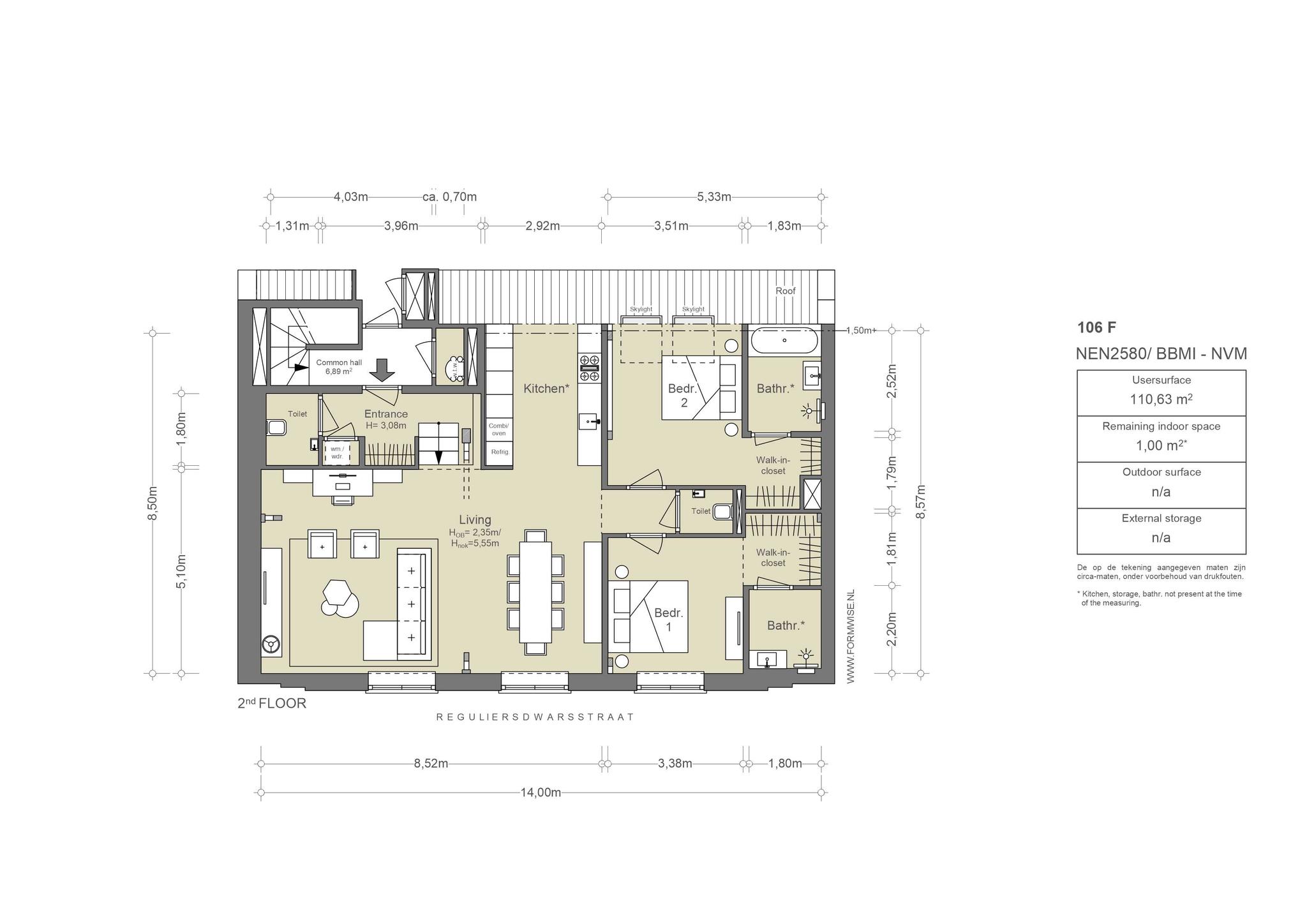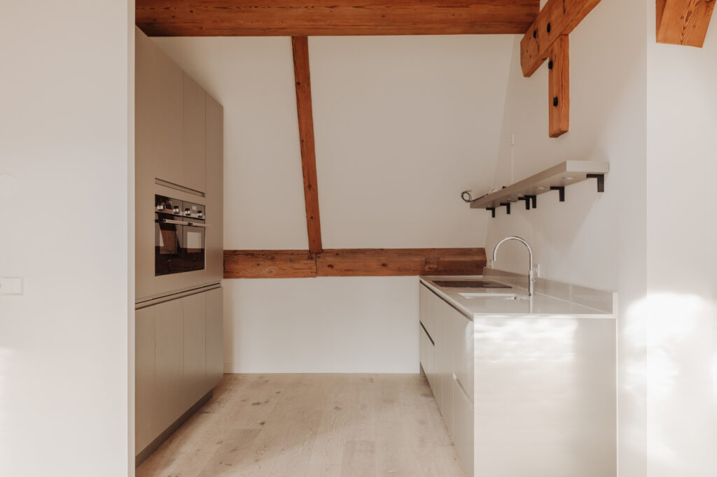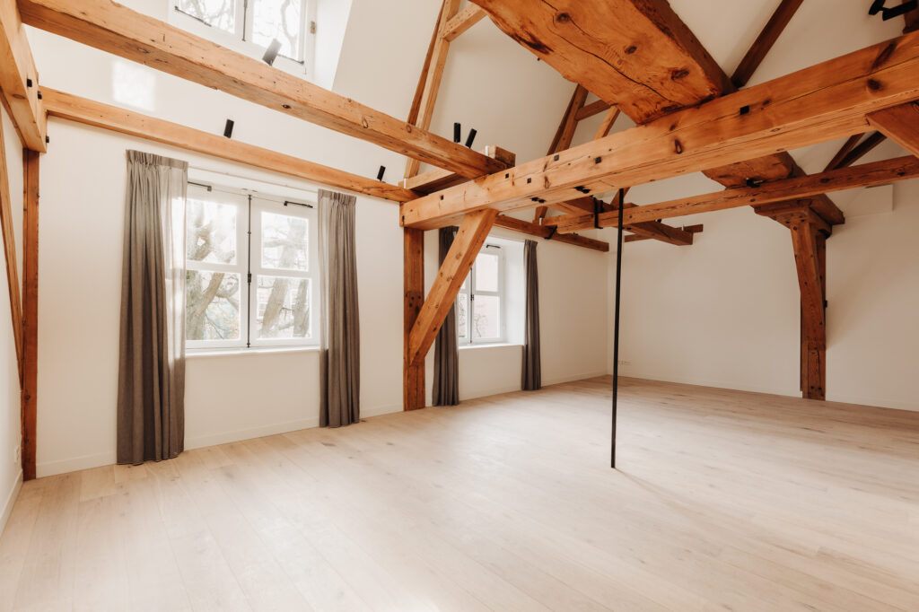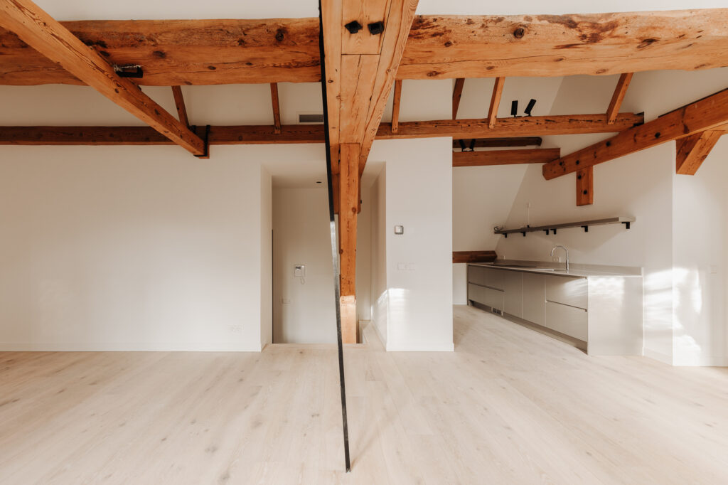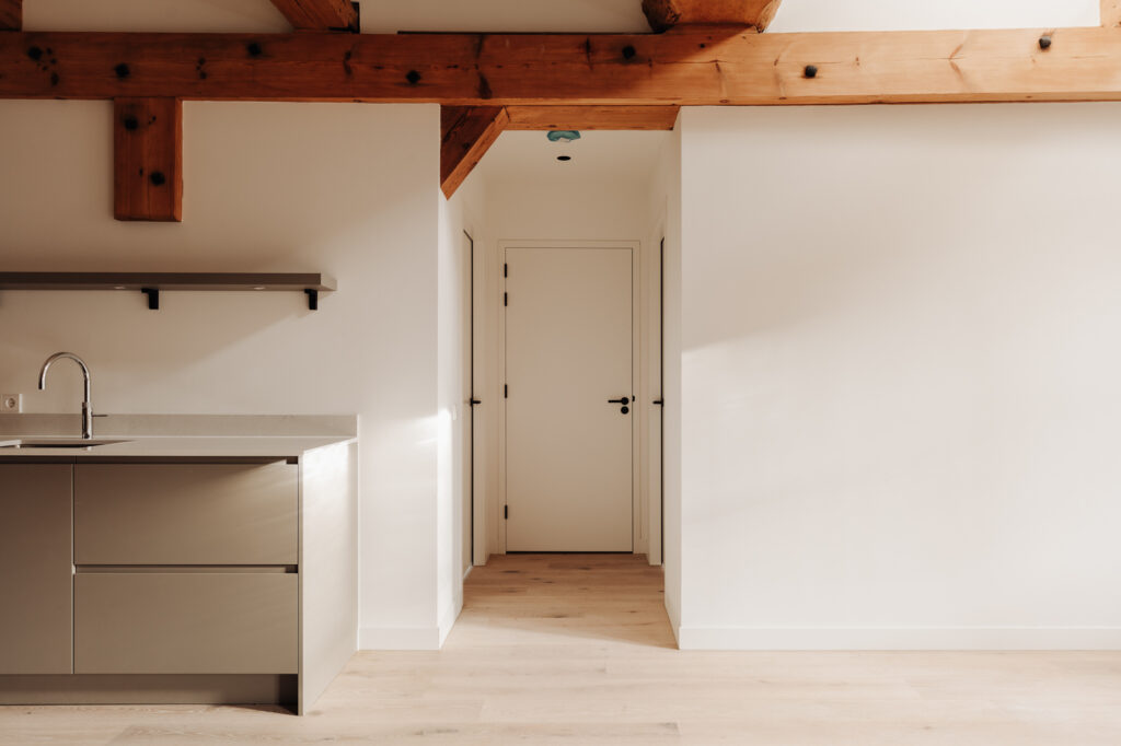 Bij binnenkomst middels spreekt de moderne open woonkeuken direct tot de verbeelding. De maatwerk keuken is voorzien van diverse inbouwapparatuur. Door de prachtige originele balkenconstructie ontstaat er een ruimtelijk en open gevoel. Beide slaapkamers zijn voorzien van een walk-in-closet en en-suite moderne badkamer. Op de hal bevinden zich twee separaat toiletten. Het gehele appartement is voorzien van vloerverwarming en er is een lichtplan aanwezig. Er zijn lichte materialen en kleuren gebruikt wat een gevoel van elegantie en luxe geeft.