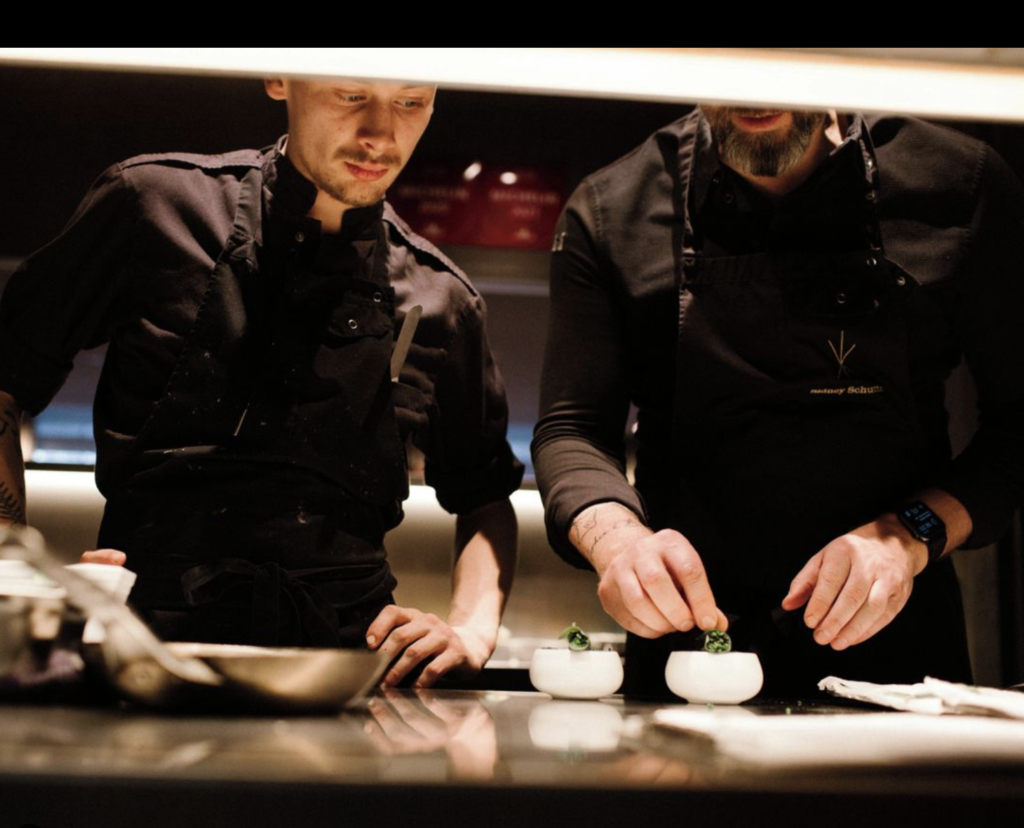 Restaurant CUE Amsterdam biedt een unieke beleving waar gastronomie (restaurant) en muziek (Listening bar) perfect samensmelten. De culinaire aanpak van CUE is verfijnd en innovatief en laat subtiele Noord Europese en Japanse invloeden zien. Dit is te danken aan chef-kok George Kataras en sommelier Mohamed Aous, die eerder samenwerkten in het met een Michelinster bekroonde restaurant Vanderveen en in 2025 ook hier een ster hebben ontvangen.