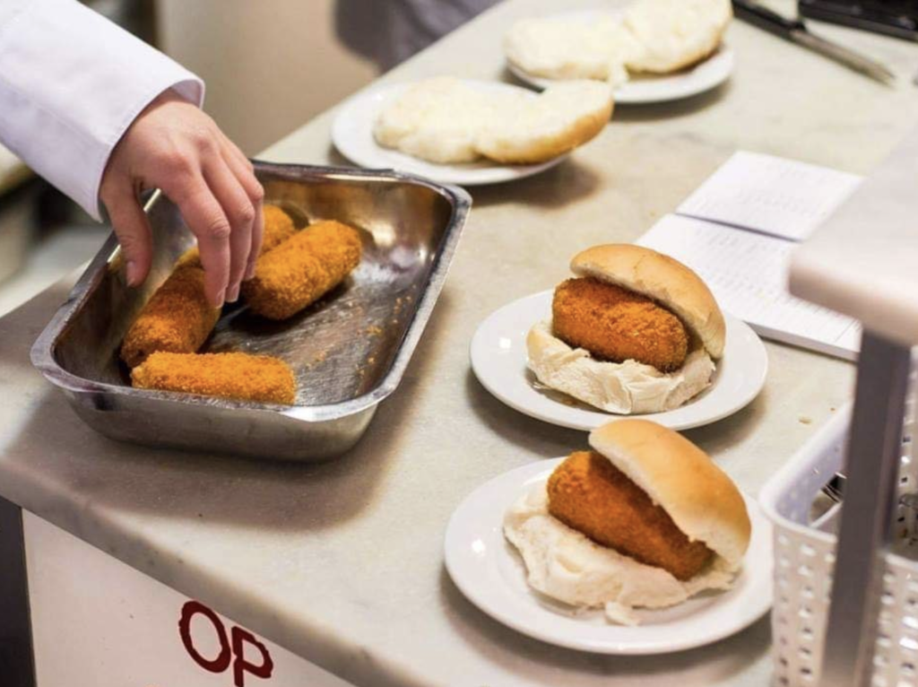 Eetsalon Van Dobben is een begrip in de wereld van kroketten. Midden in het centrum van de stad kan je altijd terecht voor een broodje kroket en een glaasje melk. Op 28 juni 1945 opende Aat van Dobben zijn eerste broodjeszaak in hartje Amsterdam en sindsdien is de plek een pleisterplaats voor artiesten, voetballers en vele andere Amsterdammers. Als je niet van kroketten houdt, is er gelukkig nog een waslijst met andere oer-Hollandse broodjes en gerechten die je kan bestellen, zowel erwtensoep als een boterham met hagelslag.