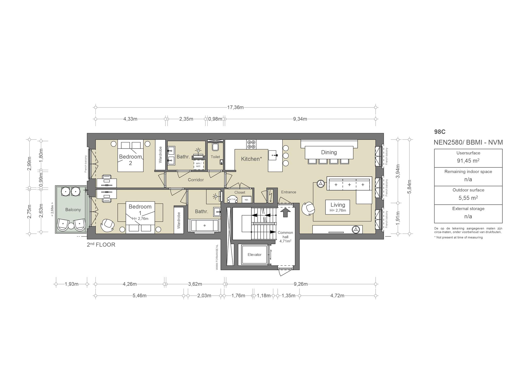 Bij binnenkomst middels de gemeenschappelijke trap of lift spreekt de moderne open woonkeuken aan de voorzijde direct tot de verbeelding. De maatwerk keuken is voorzien van diverse inbouwapparatuur en een kookeiland met ontbijtbar. De woonkamer krijgt veel daglicht binnen door de drie brede ramen en daardoor ontstaat er een ruimtelijk en open gevoel. Aan de achterzijde bevinden zich de twee ruime slaapkamers met inbouwkasten en de twee badkamers, samen voorzien van wastafels, twee douches en een bad. Op de hal bevindt zich een separaat toilet. Het gehele appartement is voorzien van vloerverwarming en er is een lichtplan aanwezig. Er zijn lichte materialen en kleuren gebruikt wat een gevoel van elegantie en luxe geeft.