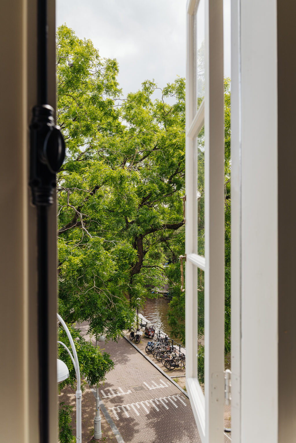 Wat ik een leuk gegeven vind is dat het twee entrees heeft één op de Reguliersgracht voor de bovenverdiepingen en één op de Falckstraat voor de beneden verdiepingen. Het pand is gesplitst in twee appartementsrechten wat een dubbele bewoning mogelijk maakt.