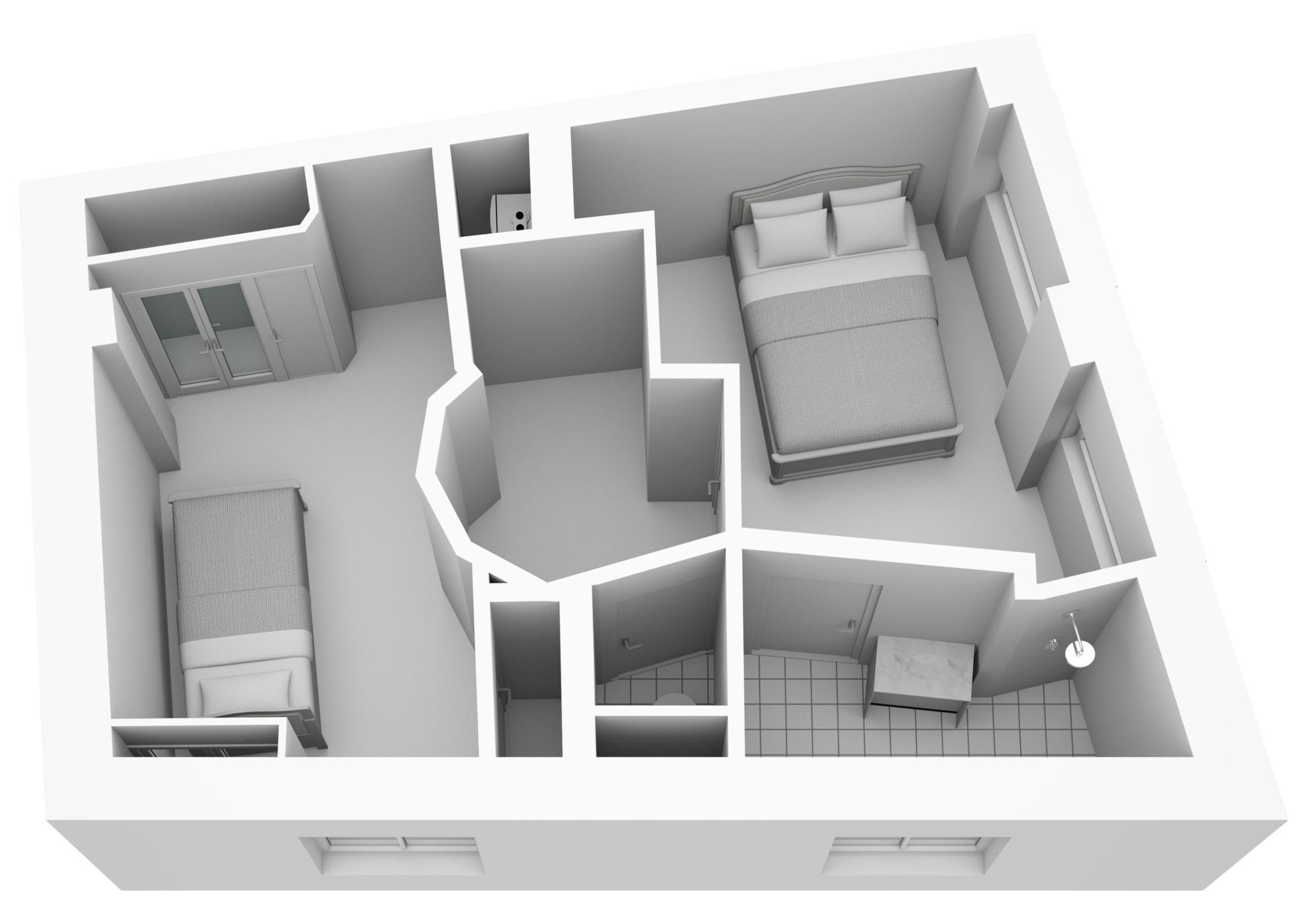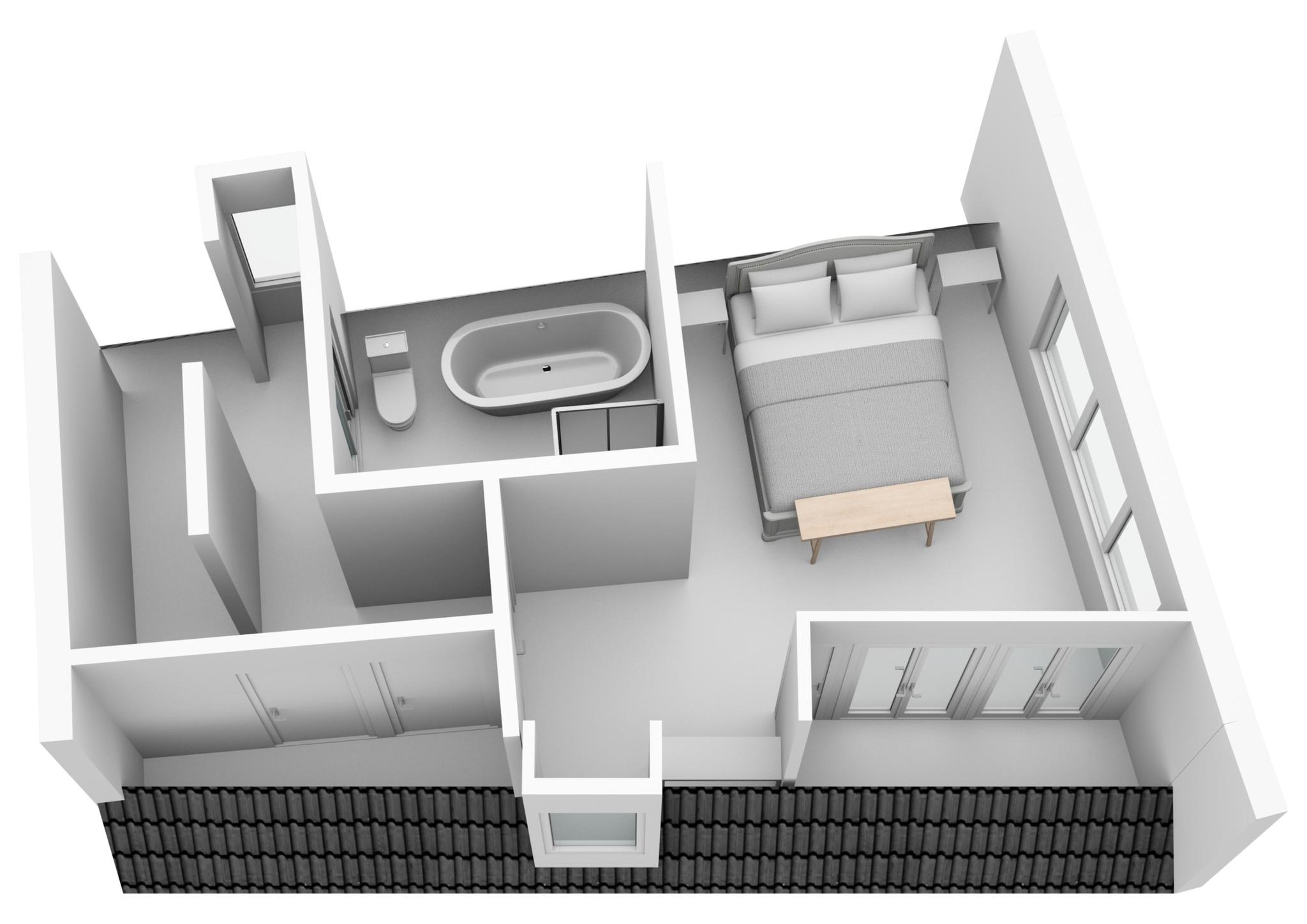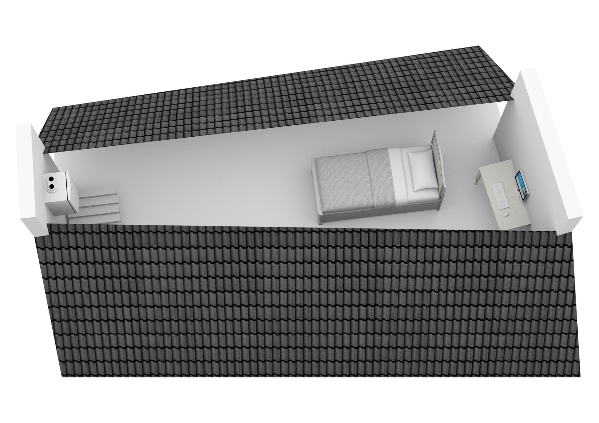 (Slaap-)kamer in de kapverdieping met een raam aan de voorzijde