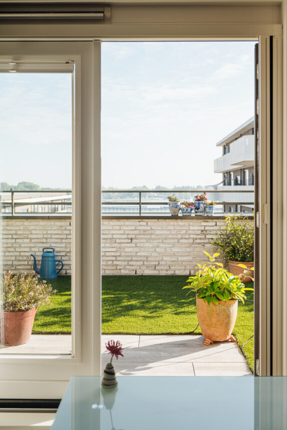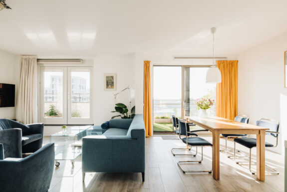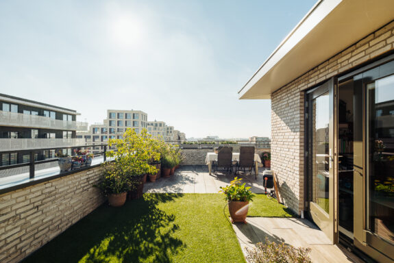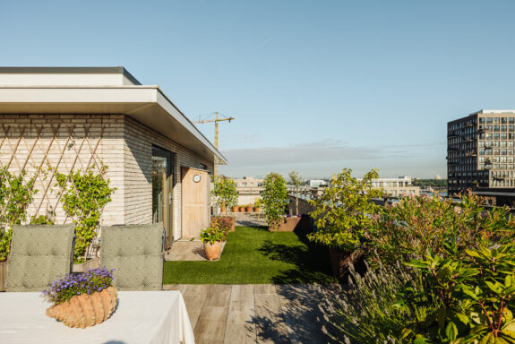 Uniek aan dit appartement is het zeer riante dakterras van ca. 87 m², vanuit hier is er panoramisch uitzicht en kan er genoten worden van de schepen over ’t IJ. Een uitzicht dat nooit zal vervelen.