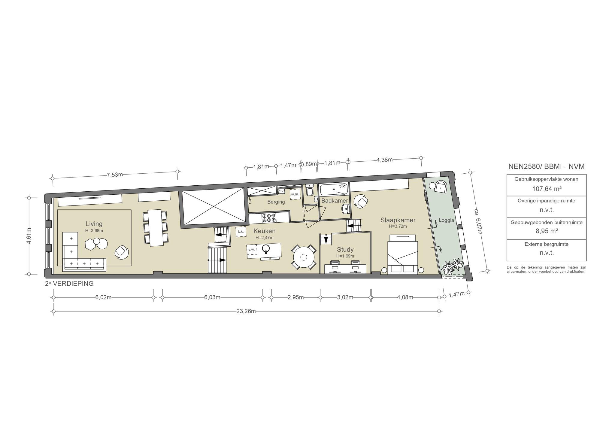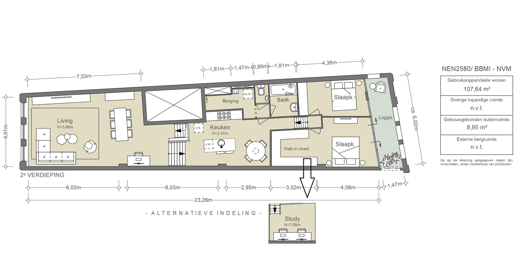 De zeer hoge, open loggia van ca. 9m² is gelegen op het westen en is de ideale plek om vanaf het middaguur van de zon en de rust te genieten totdat de zon halverwege de avond ondergaat. De achterpui is recent geheel vernieuwd en geïsoleerd door de VvE en voorzien van dubbel glas.