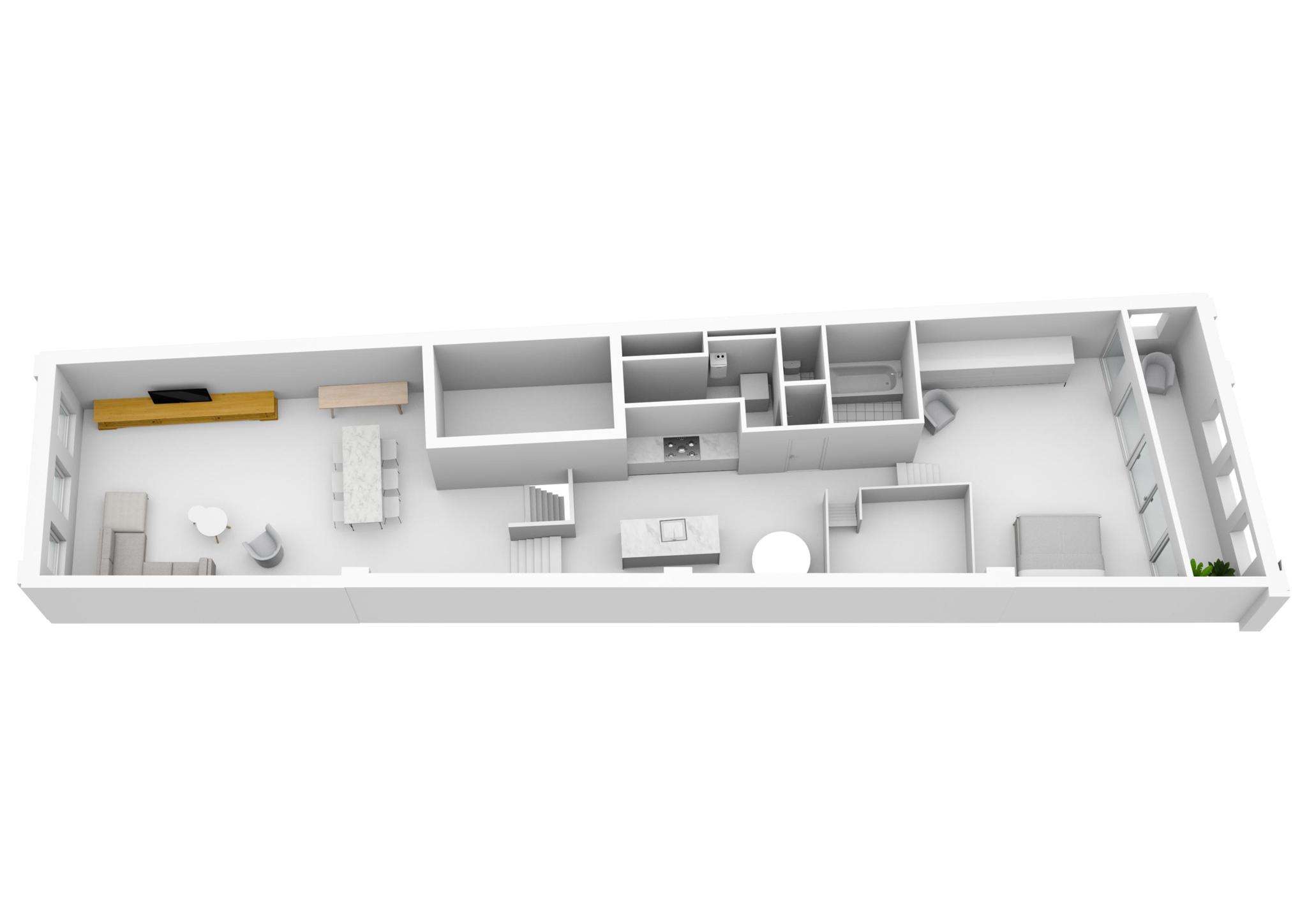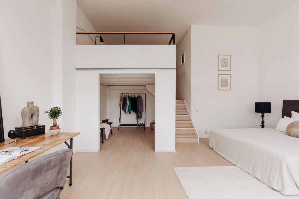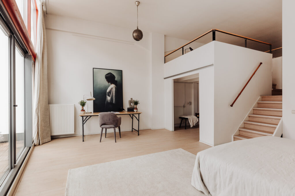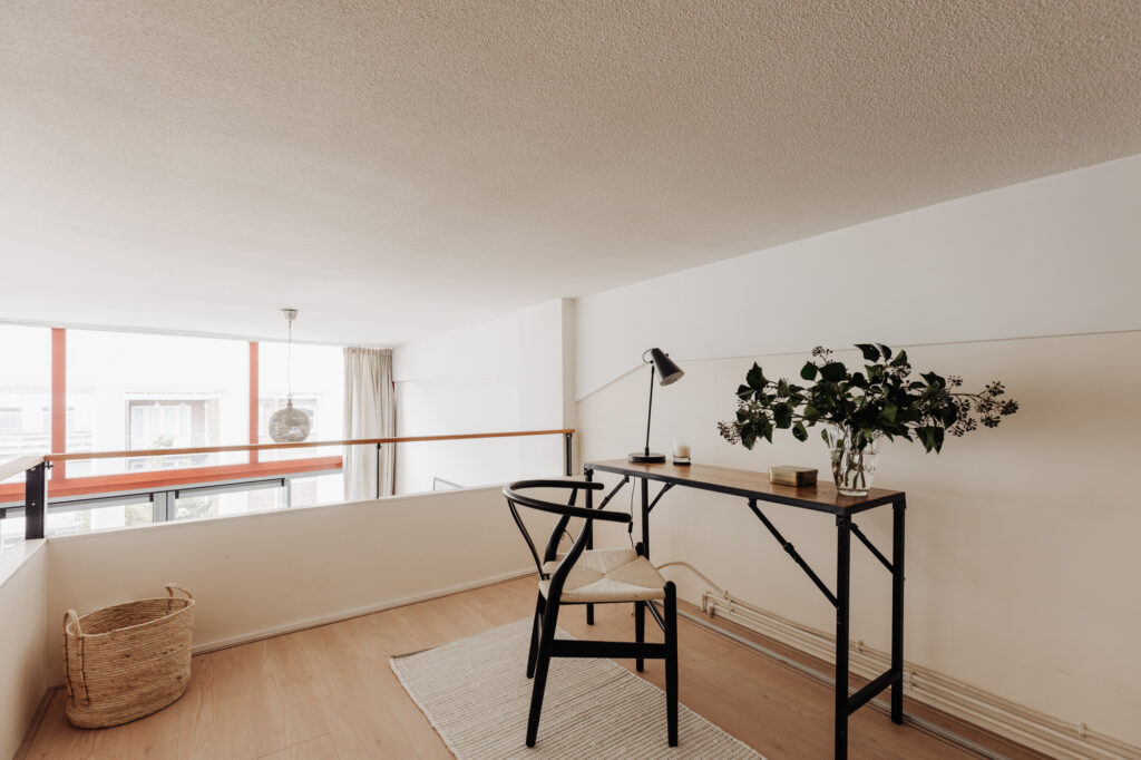 Vanaf de keuken is de entresol bereikbaar, met daarop de perfecte ruimte om een royale thuiswerk plek te creëren.