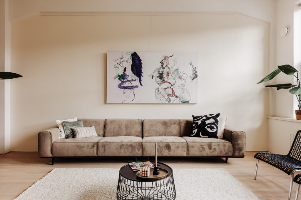 Royaal wonen in een gebouw met historie en hedendaags comfort (lift). Het hoge en lichte loft appartement heeft een open structuur maar biedt door de indeling en verschillende vloerniveaus voldoende privacy. De ruime living, gelegen aan het water, heeft hoge ramen en is voorzien van een lichte, eikenhouten parketvloer. De muren van circa 3,75 m hoogte bieden veel ruimte voor grote schilderijen en kunst. Het appartement is goed geïsoleerd en daardoor heerst er een oase van rust; als de ramen gesloten zijn, hoor je geen geluiden van buiten of buren. Het is heerlijk vertoeven in de ochtend wanneer de zon tot aan het middaguur in de living schijnt. In de zomer kun je aan de voorkant van de befaamde ‘staande mastroute’ genieten.