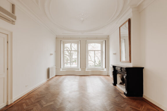 Een prachtig en statig pand dat al langer bij ons bekend is en steeds weer weet te verrassen. Dit specifieke stukje straat waarvan de voorzijde niets doet vermoeden van hetgeen aan de achterzijde verbogen ligt. De Fin de Siècle architectuur met riante maatvoering en uitstraling is kenmerkend voor de Vondelbuurt. Nu het pand is leeggekomen, zoekt het een nieuwe bestemming die weer terug gaat naar haar oorspronkelijke. Een representatief en riant gezinshuis, al dan niet met werken-aan-huis functie of meervoudige bewoning. Dankzij de grote en met name riante tuin zal het de investering lonen. De basis is er, met dergelijk riante maatvoeringen, grote raampartijen en vrije zichtlijnen behoeft het geen uitdaging te zijn iets moois ervan te maken.