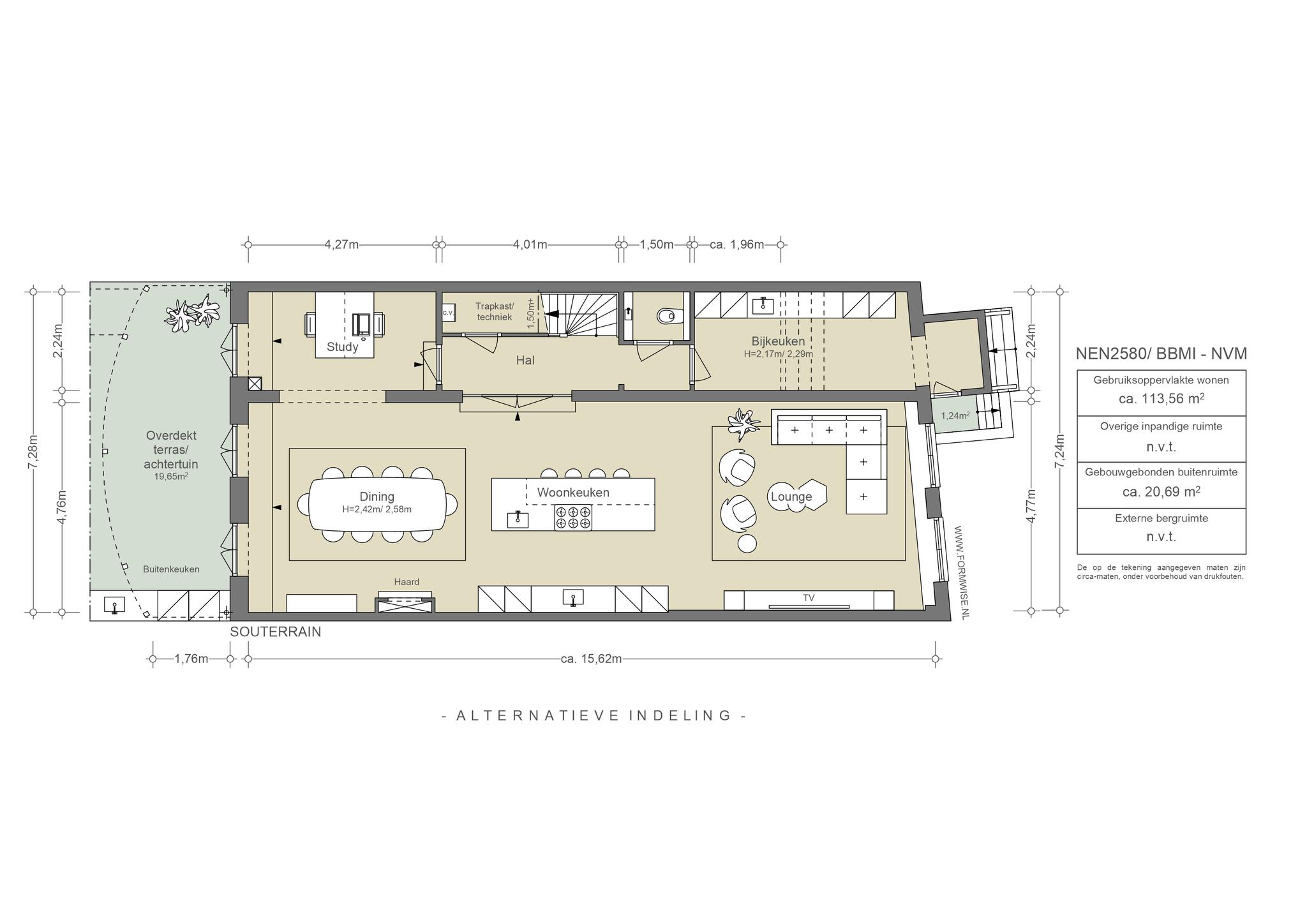 Het souterrain beschikt over een voor- en achterkamer, keuken, sanitair, beging en technische ruimte. Via de achterkamer is middels openslaande deuren de achtertuin met terras toegankelijk. Aan de straatzijde heeft het souterrain een extra entree.