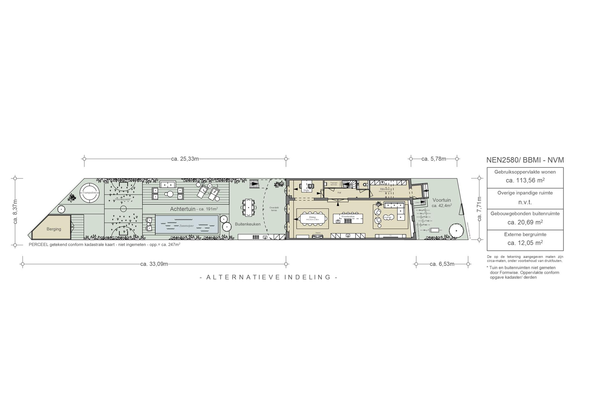Een absolute verrassing van het gebouw is de achtertuin gelegen op het zuidwesten en is circa. 205m².