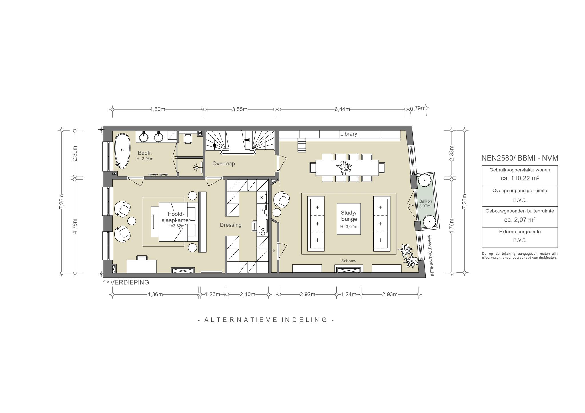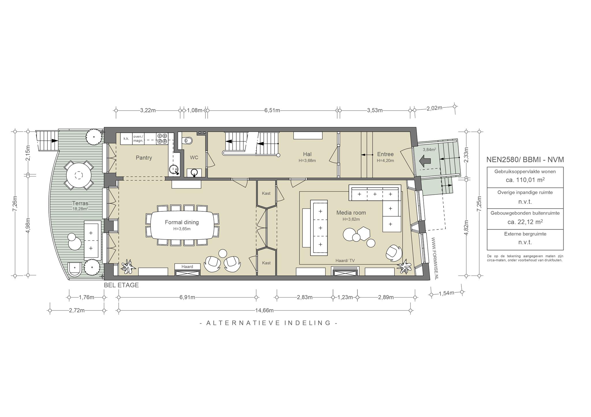 Het pand is oorspronkelijk gebouwd als familiehuis. In die tijd ook om te imponeren. De indeling leent zich in de basis ook om te gebruiken als gezinshuis. Als inspiratie is een indelingsplan gemaakt en toegevoegd ten behoeve van een modern huis.