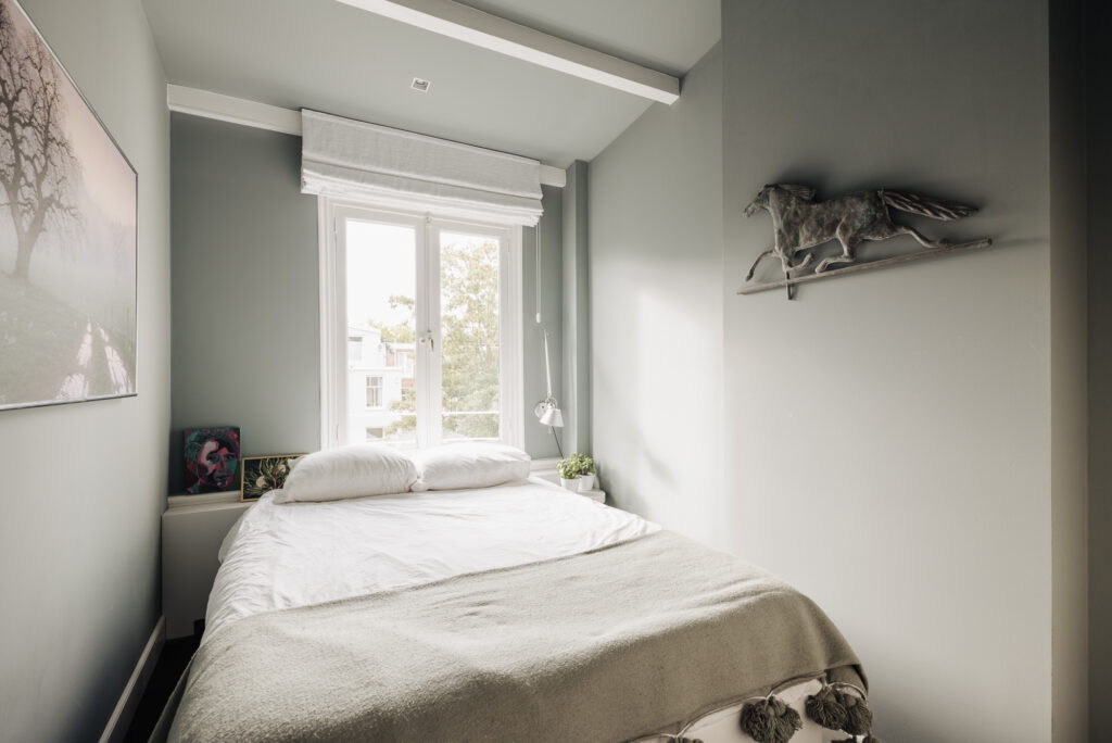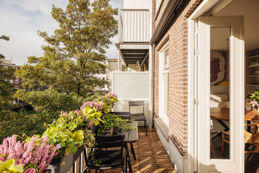 De zeer ruime boven verdieping waar je heerlijk de regen op het dak hoort tikken en de vogels hoort fluiten in de grote bomen in de achtertuinen. Midden in de Pijp met aan een kant het Sarphatipark en de Albert Cuyp markt en aan de andere kant de weidse Amstel.