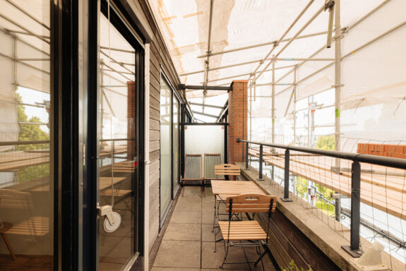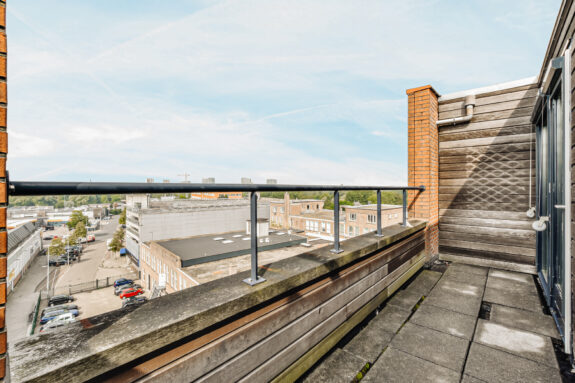 ‘s Avonds zitten we het liefst op het balkon, waar je kan genieten van ruimte en rust midden in Amsterdam met prachtige zonsondergangen.