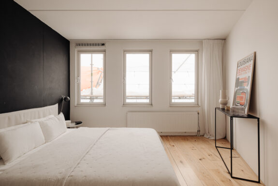 Anja Henneman, voormalig topmodel, ontwierp dit interieur op de 19e verdieping van het Pontsteiger gebouw