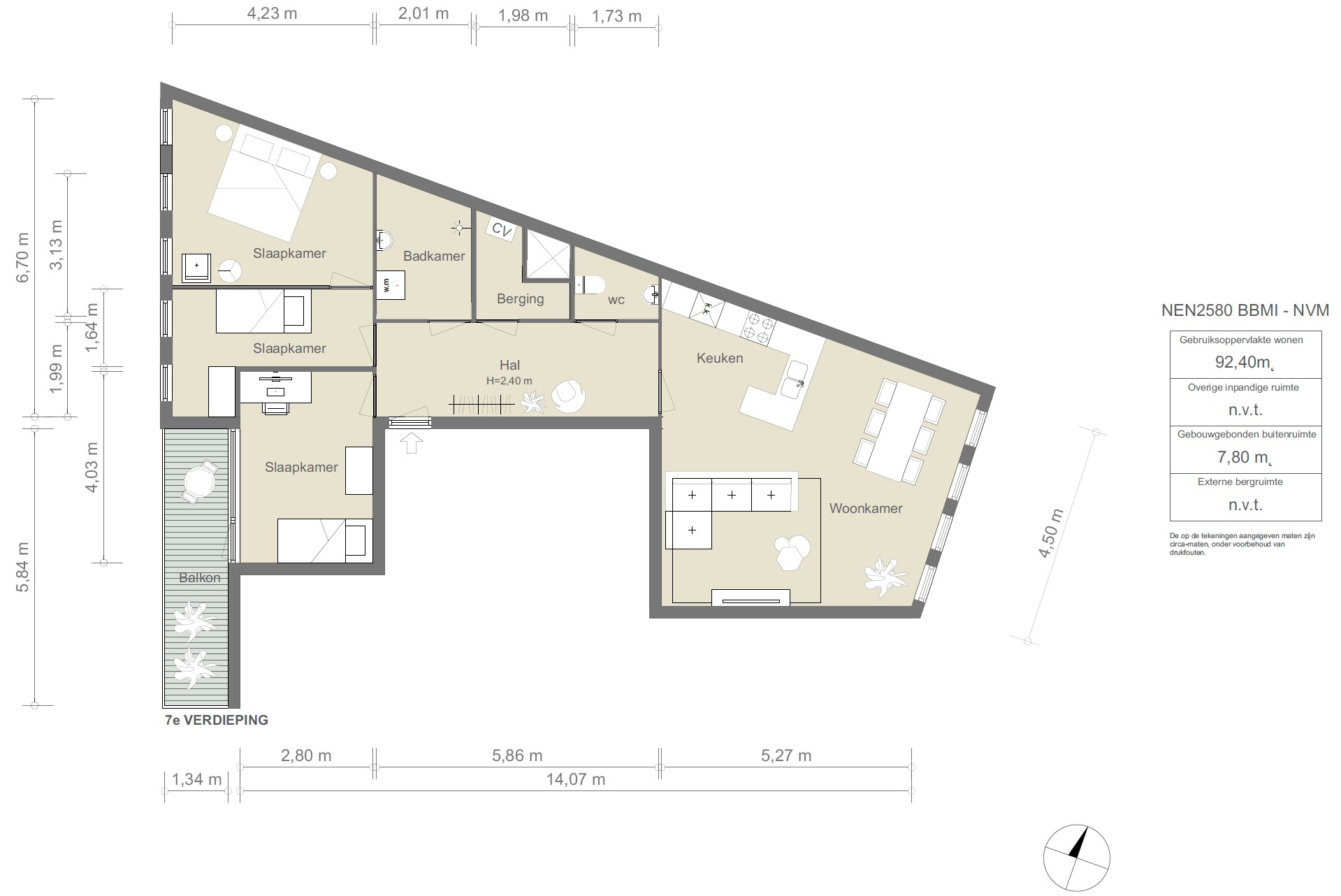 I know from a question on the real estate agent exam that this apartment is located in a well-known car-free neighborhood, which happens to be the first eco-friendly neighborhood in the Netherlands. There is even a dedicated website: www.GWL-terrein.nl. This apartment is situated in residential block 2A, on the top floor, the seventh floor. The residents fully appreciate the neighborhood, Westerpark, and all the amenities the area has to offer.